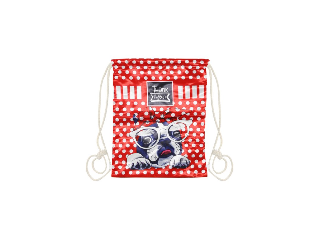 Textilní sáček na přezůvky s lesklým potiskem "Dog Red Dots" se zarážkami na obou stranách. Vak je vhodný pro sportovní využití i běžné nošení.Doplňkové parametry