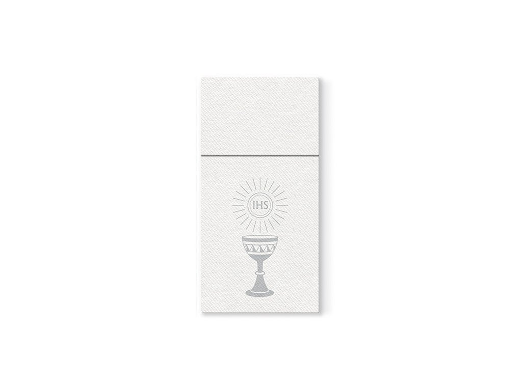 Kapsy na příbory PAW Airlaid 40x40cm My First Communion Silver, 25 ks/bal