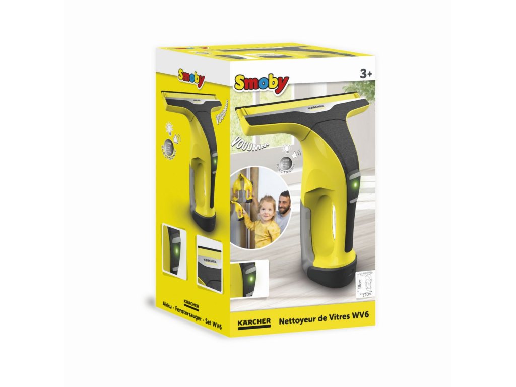 Čistič oken je detailní replikou velkého originálu Kärcher WV6, vybavený funkcemi pro děti: stisknutím tlačítka se rozsvítí lampa a uslyšíte zvuk páry. Rozměry produktu (DxŠxV): 17 x 8 x 18,7 cm.Doplňkové parametry
