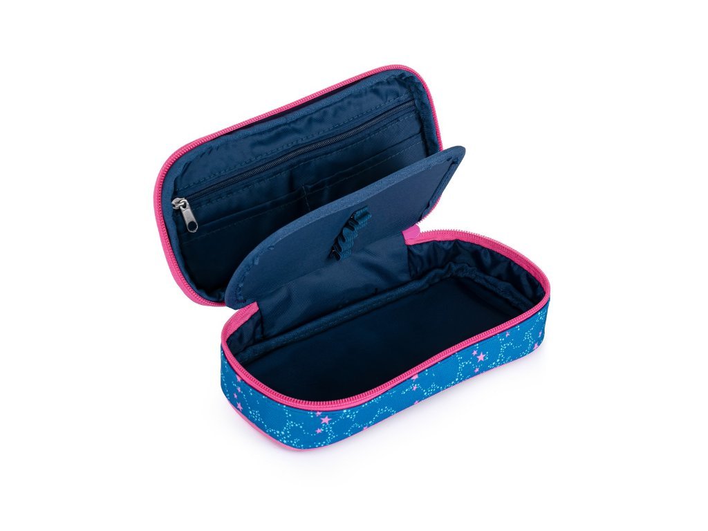 Karton P+P Pouzdro etue komfort Unicorn 1 Jednorožec Kůň Rozměry: cca 20,5 x 10 x 5 cm Školní pouzdro etue s motivem jednorožce. Pouzdro je opatřeno pevnými zipy, kapsičkou na zip a klopou s pevnými poutky po obou stranách. Pod klopou je místo pro volné uložení psacích potřeb nebo jiných drobností.Doplňkové parametry