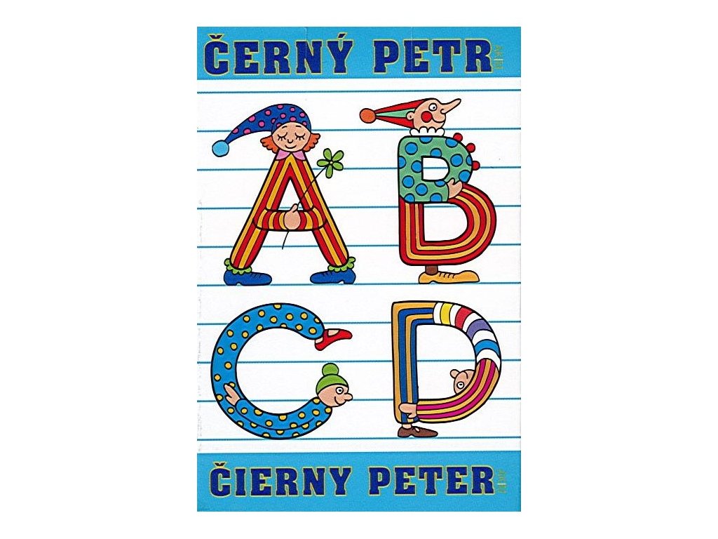 Hrací karty Černý Peter v papírové krabičce s dětskými motivy.