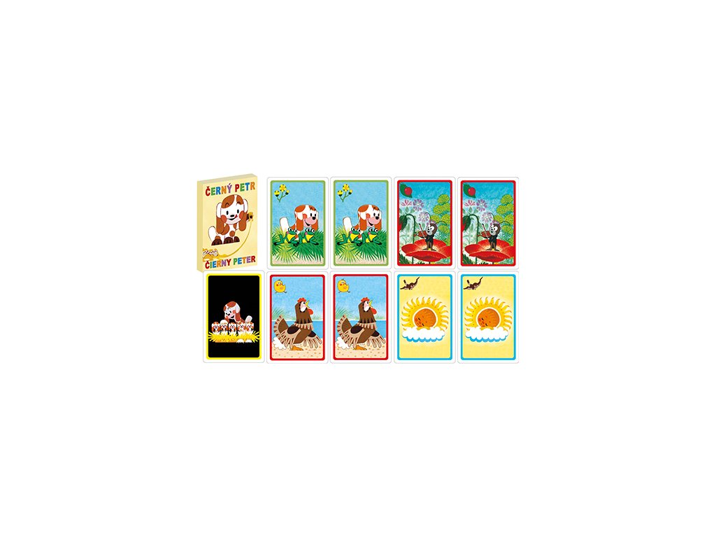 Dětské karty Černý Petr v papírové krabičce s barevným motivem. Sada obsahuje: 12 dvojic (24 karet) + kartu Černý Petr a návod ke hře.Doplňkové parametry