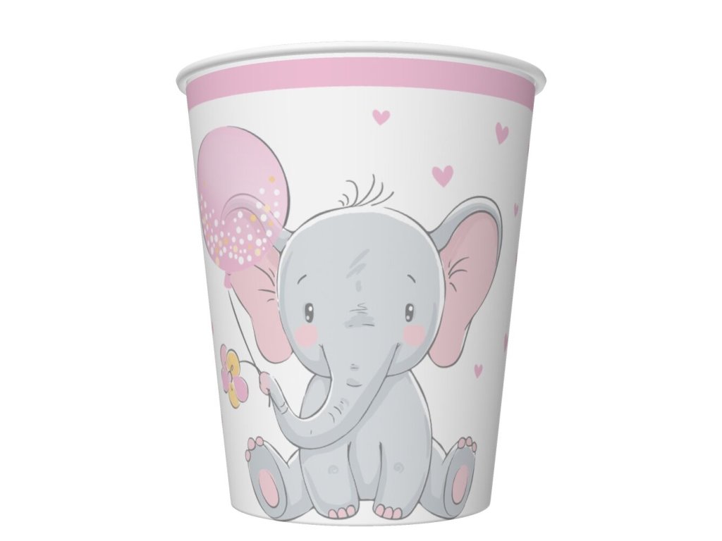 Kelímek papírový PM 250ml 8ks Baby Elephant with pink Balloon