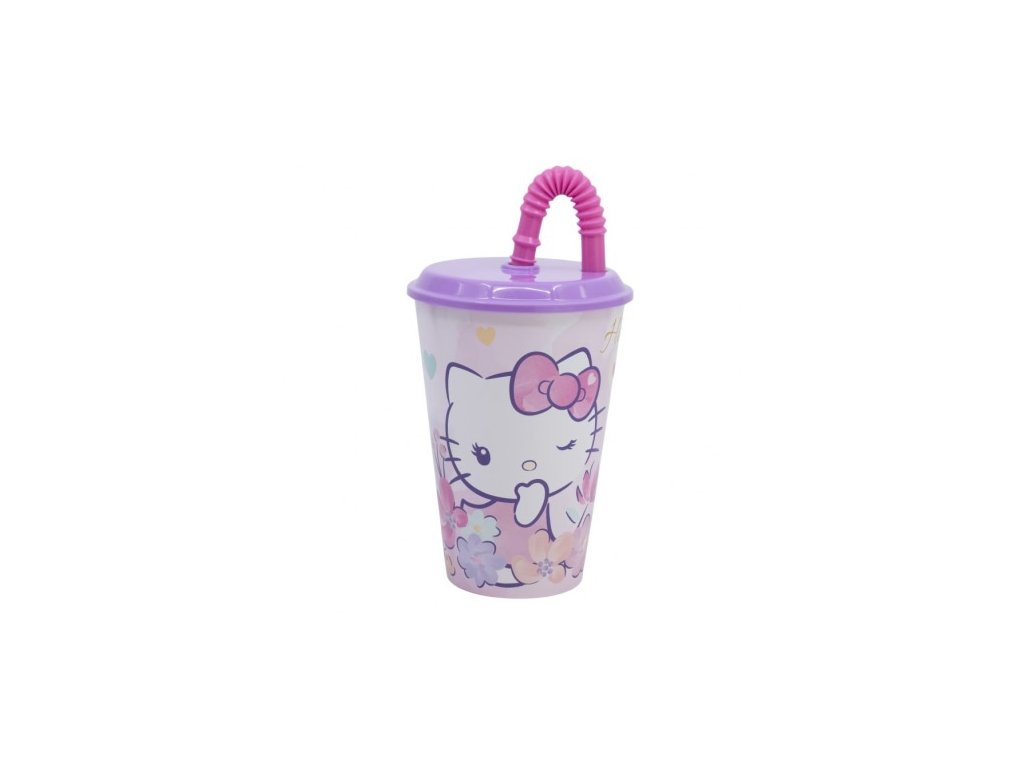 Kelímek plastový s brčkem 430 ml Hello Kitty