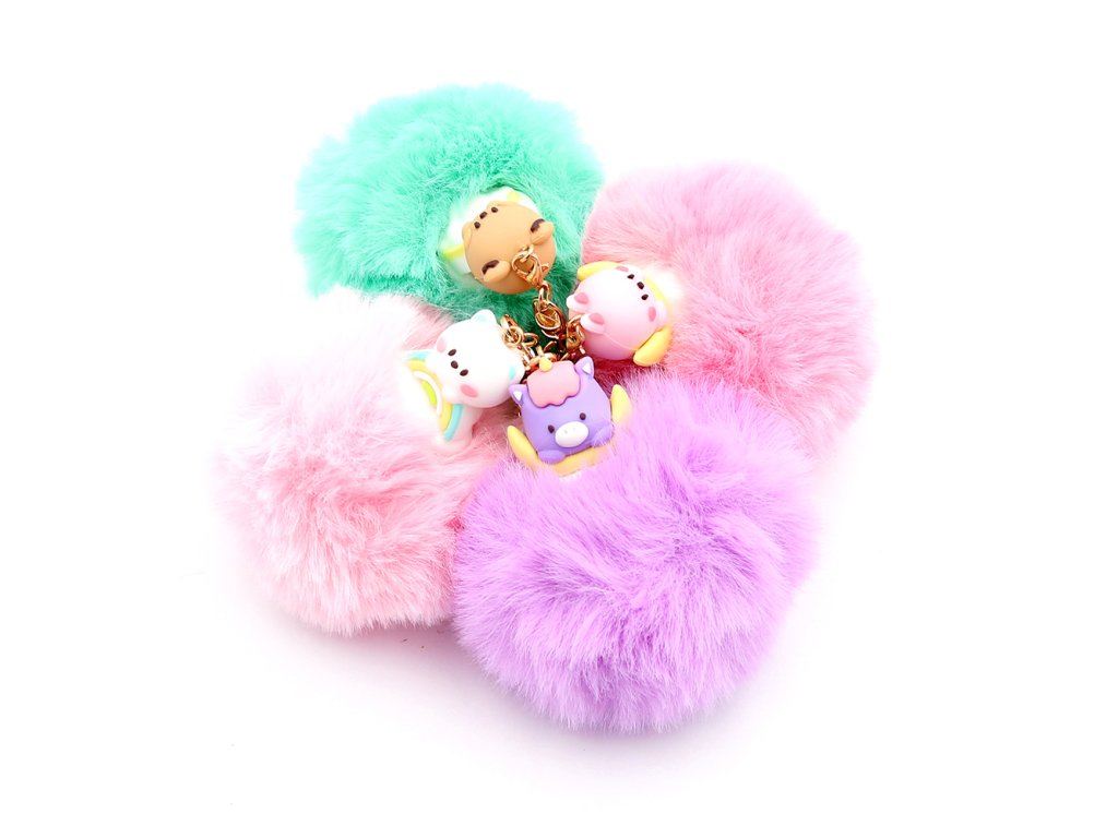 Přívěsek s heboučkým PomPem a gumovým zvířátkem (3 barvy / motivy).