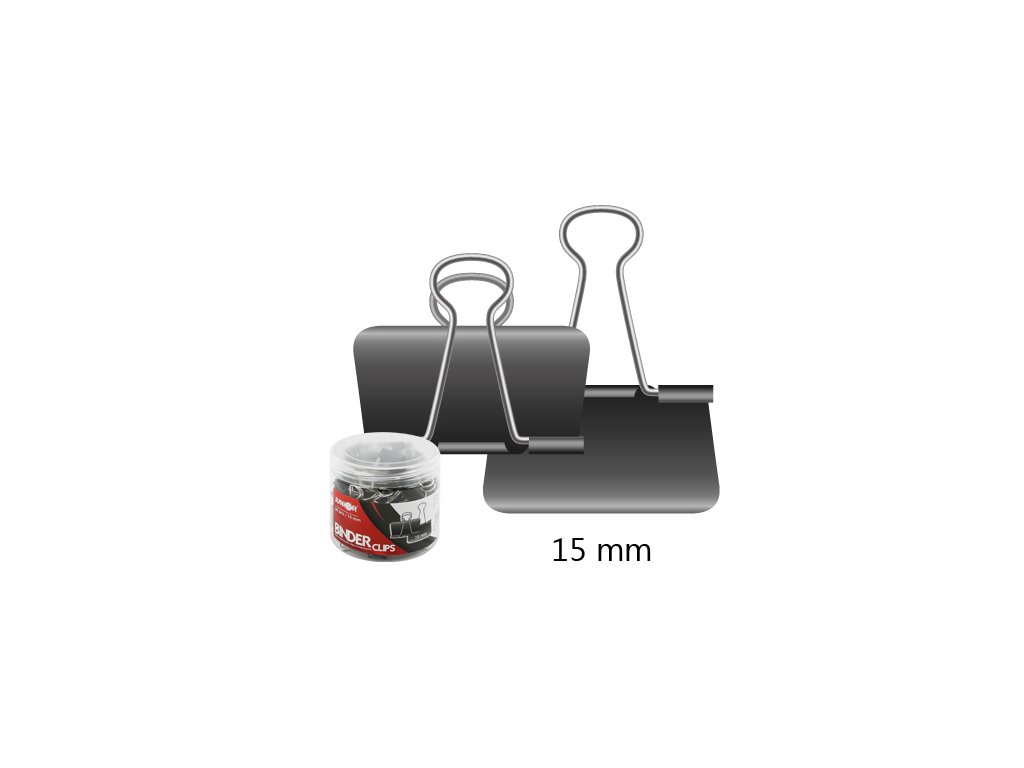 Kovové klipy v černé barvě, vhodné na spínání dokumentů, šírka klipu 15 mm, balení 40 ks v krabičce.Doplňkové parametry