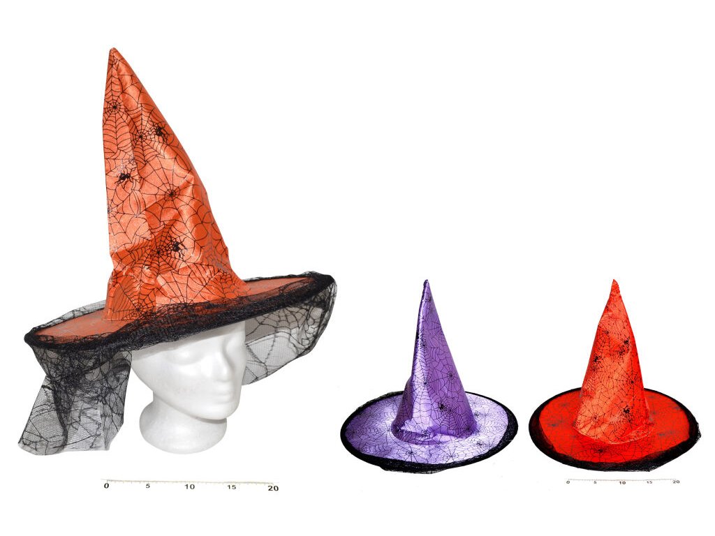 Klobouk na karneval jako doplněk ke kostýmu čarodějnice. Pokud se chystáte na párty nebo halloweenskou oslavu tento klobouk nesmí chybět ve vašem šatníku. POKUD SI PŘEJETE KONKRÉTNÍ BARVU, PROSÍM UVEĎTE TO DO POZNÁMKY V OBJEDNÁVCE.Doplňkové parametry