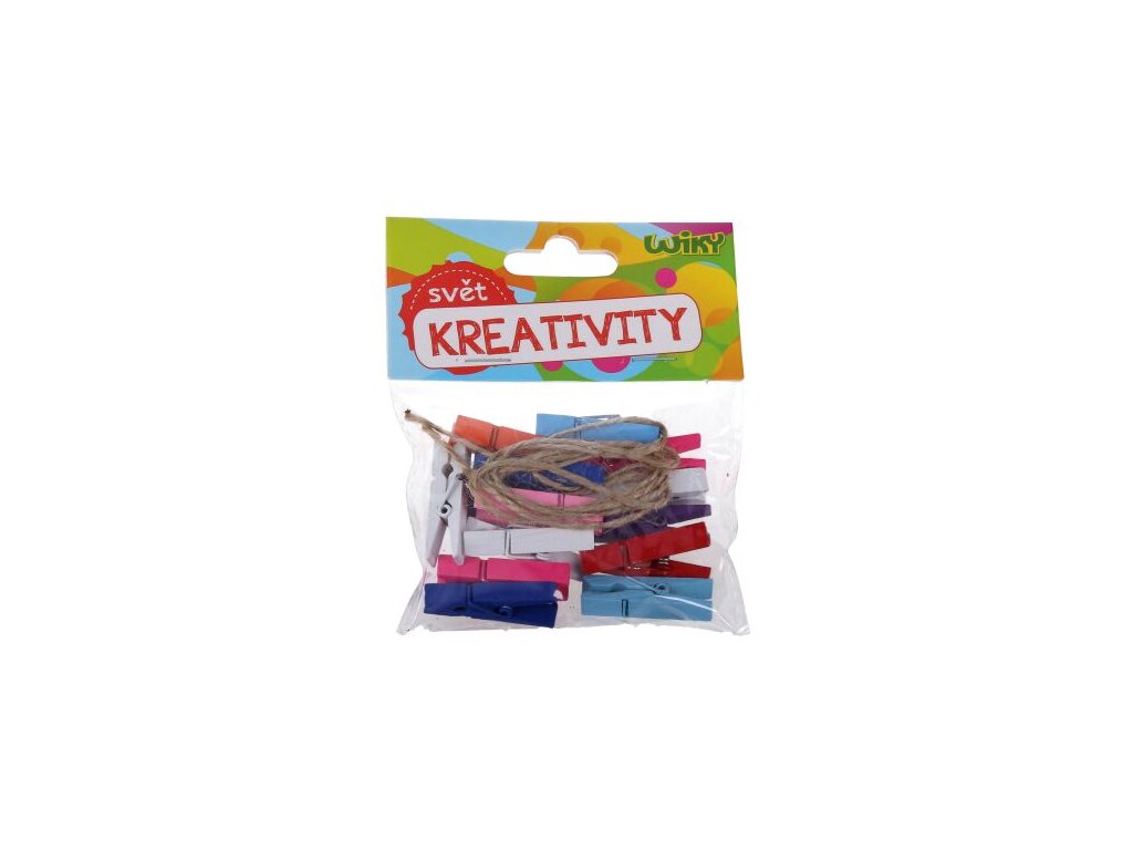 Kolíčky 3,5 cm barevné 15ks + provázek