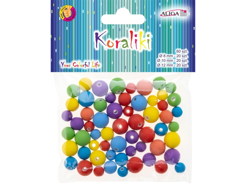 Mix velikosti a barev. 8mm, otvor 2mm - 20 ks 10mm, otvor 2mm - 20 ks 12mm, otvor 2mm - 20 ksDoplňkové parametry