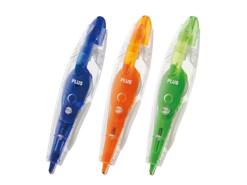 Jednorázový korekční strojek PLUS PS WH-034 umožňuje pohodlné a čisté nanášení korekčního filmu.