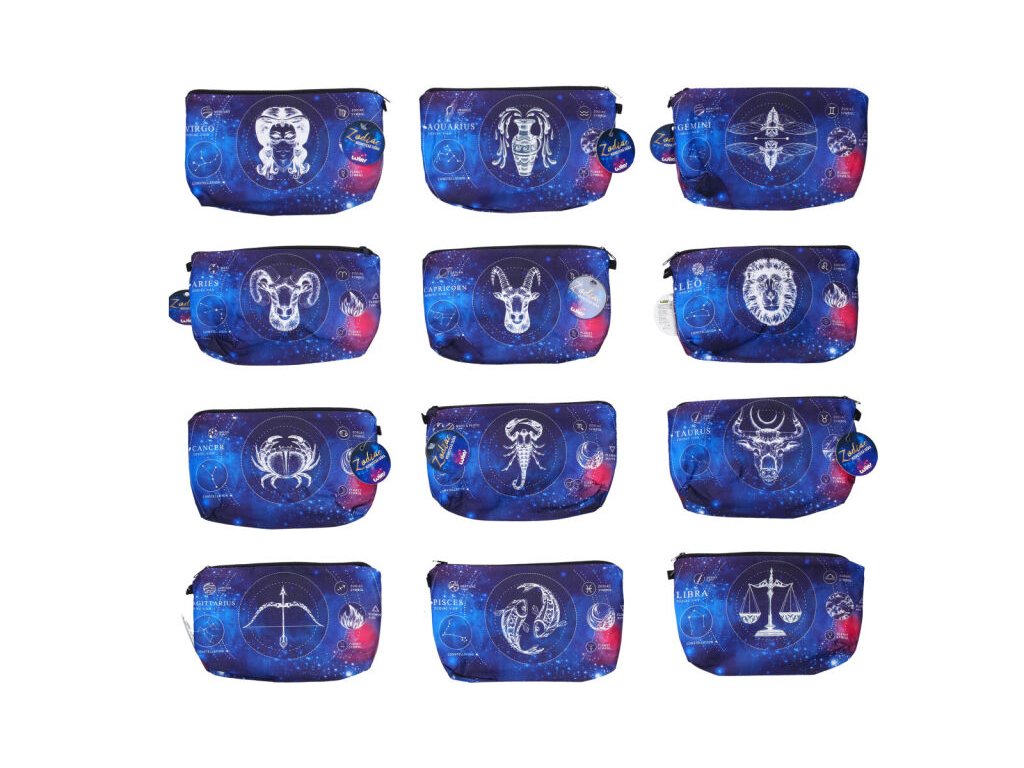 Kosmetická taška Zodiac 12 znamení zvěrokruhu. Velikost 20,5x4x14 cm. Požadovanou variantu uveďte prosím do poznámky. Nebude-li uvedeno, zasíláme dle skladových možností.Doplňkové parametry