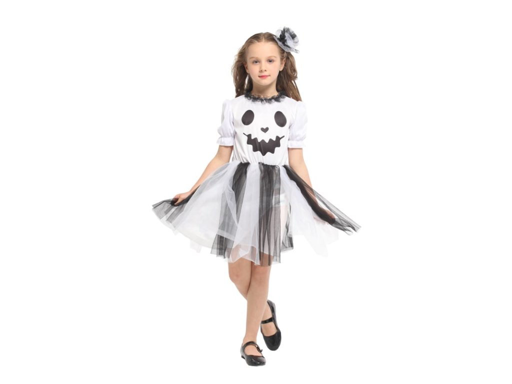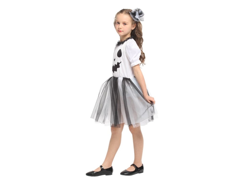 Krásný roztomilý kostým duch. Pro děti o velikosti 100-110 cm. Součásti kostýmu: šaty, čelenka.Doplňkové parametry