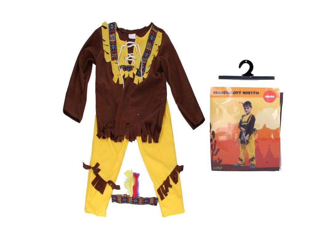 Set karneval indián. Pro děti o velikosti 110-120 cm. Součásti kostýmu: košile, gatě, čelenka.Doplňkové parametry