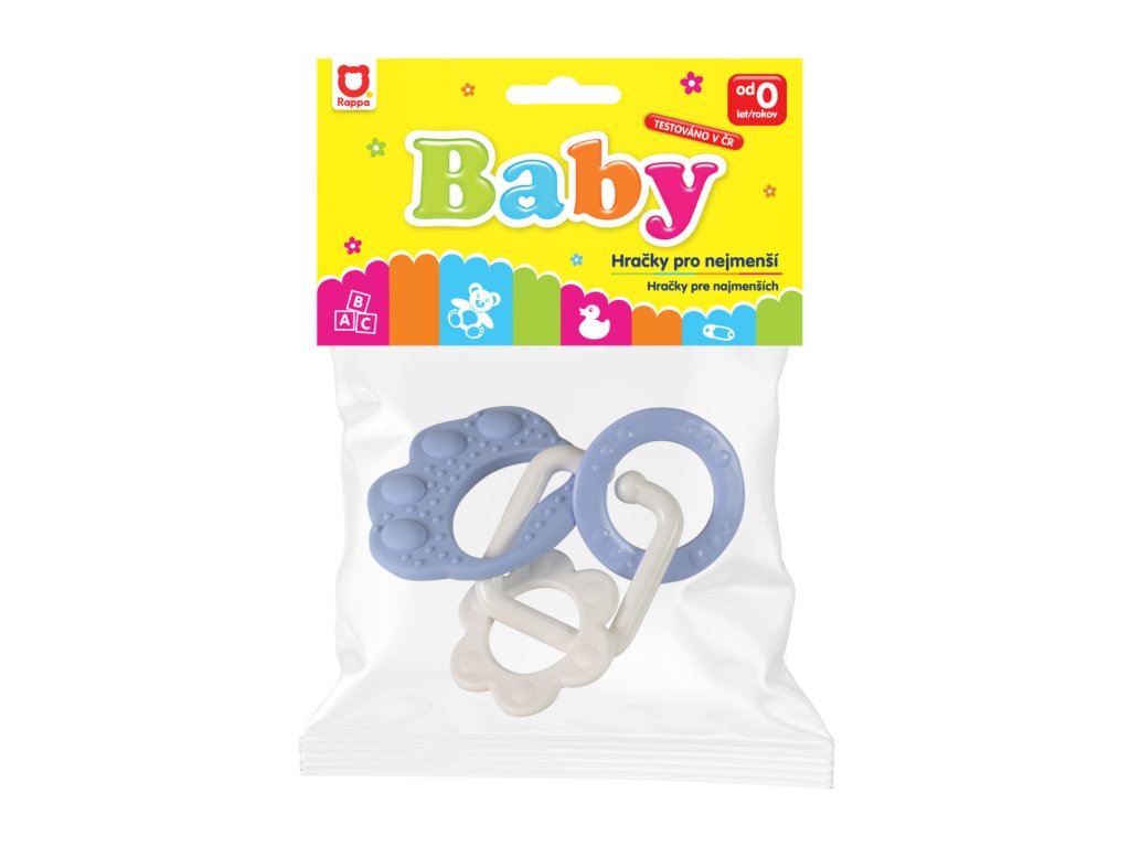 Kousátka jsou tvarovaná tak,aby byla snadno uchopitelná dětskou ručičkou, bez ostrých hran. Na tlapičce jsou zavěšeny plastové tvary v různých provedeních, ať už to ve tvaru kolečka, srdíčka, zvonečku apod.Doplňkové parametry