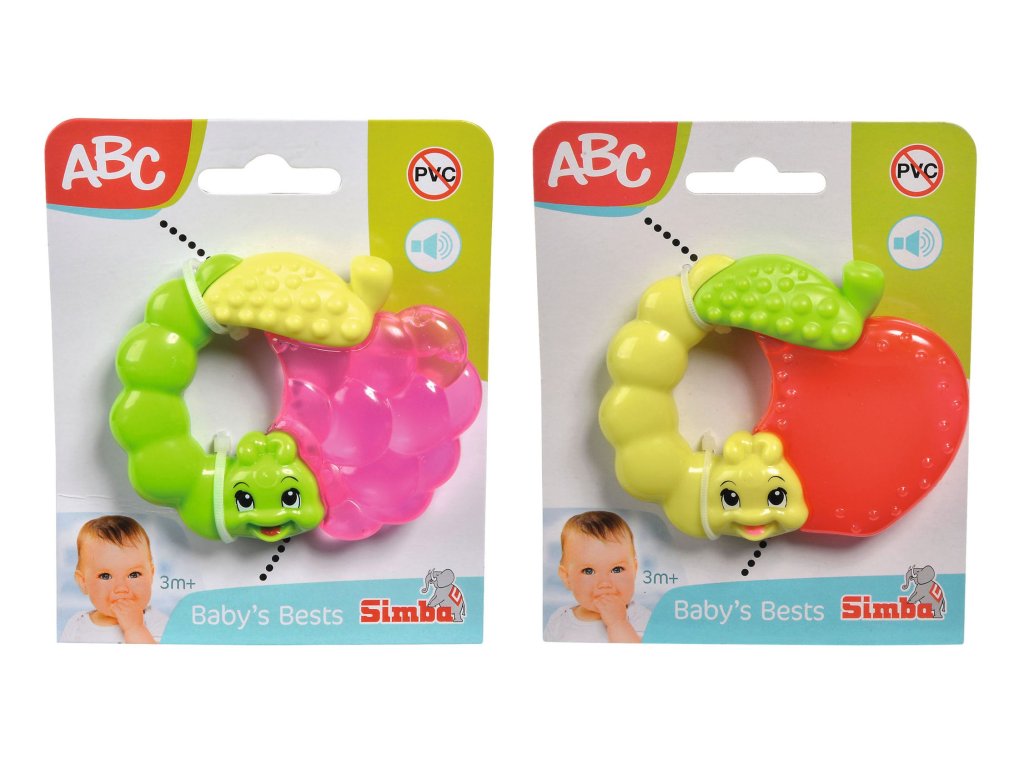 Kousátko ve tvaru ovoce s roztomilou housenkou. Ideální pro utišení bolavých dásní při prořezávání prvních zoubků. 2 druhy - malina/jablko.Doplňkové parametry