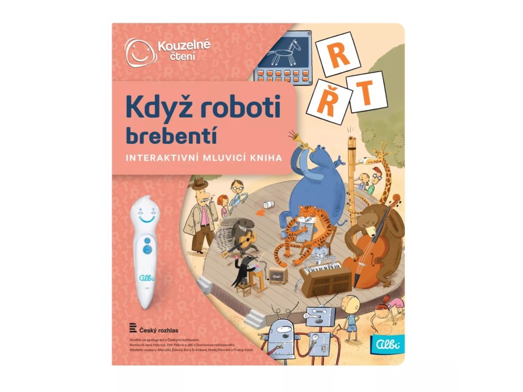 Interaktivní logopedická kniha obsahuje hravé úkoly podněcující děti k mluvení, a tím i k procvičování problematických jevů. Nechybí ani básničky, písničky a napínavé komiksy. Knihou děti provází dvě postavičky, robot Robi a robotka Otka, které jim s mluvením pomáhají. Spolu s nimi se děti pokouší správně vyslovovat hlásky D, T, N, L, R a Ř. Knihu připravila speciální pedagožka, logopedka a autorka mnoha dětských knih Ester Stará.Doplňkové parametry