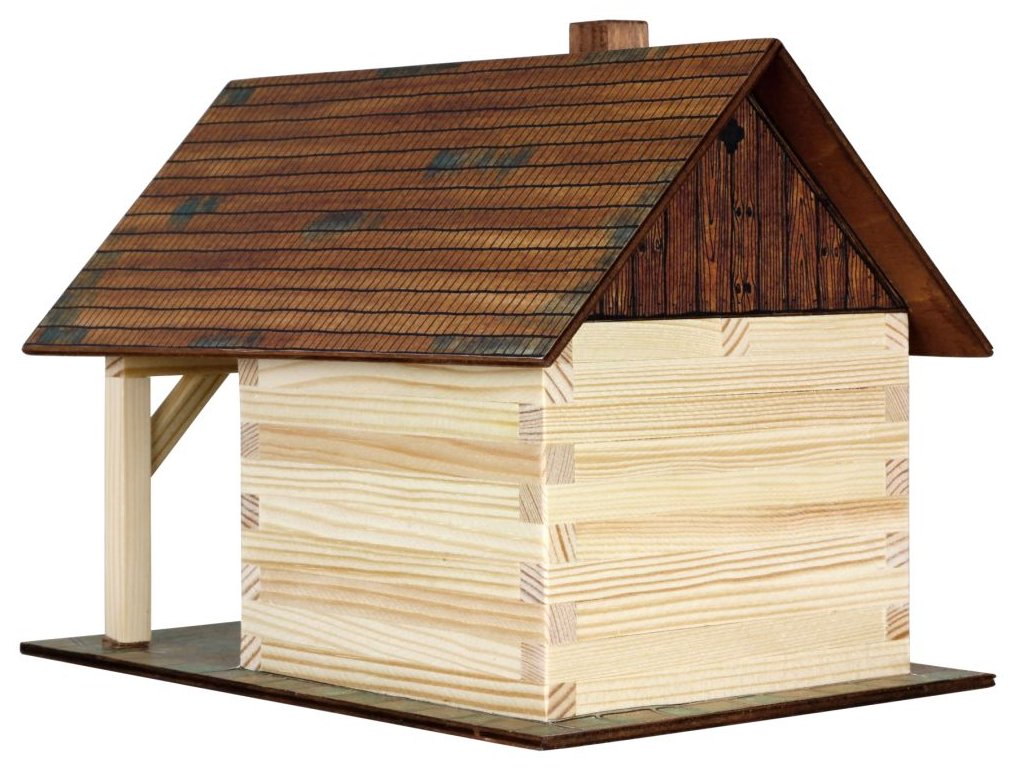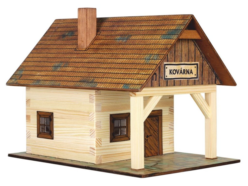 Dřevěná slepovací stavebnice KOVÁRNY, materiál je smrkové dřevo a překližka. Model obsahuje přesné díly, které sestavujete a slepujete. Dřevěné hranoly mají průřez 9x9 mm. Český výrobek.Doplňkové parametry