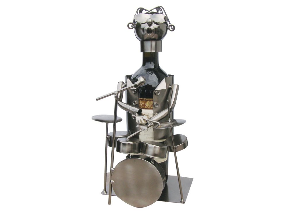Kovový stojan na víno, motiv bubeník