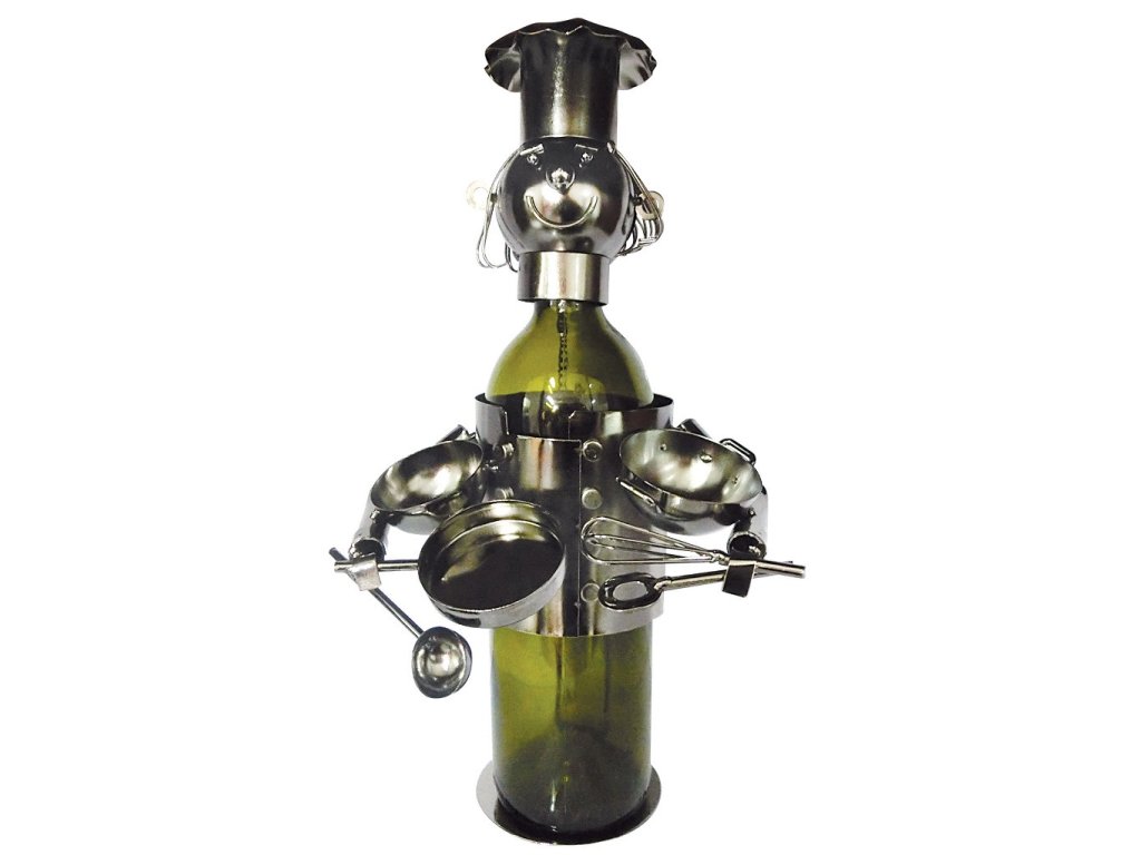 Popis produktu Stojan na jednu láhev vína . Doporučujeme jako tématický dárek.Láhve dobrého vína by se neměly po bytě toulat jen tak, zaslouží si něco lepšího. Co takhle originální stojan, ve kterém by působily trendy a zajisté by překvapily všechny hosty? Obdarujte oslavence tímto originálním stojanem. Vhodný pro typ klasické láhve 0,75 l. Nejedná se o výrobek z dílny uměleckého kováře, ale o strojově vyráběné produkty u kterých se mohou vyskytnout drobné mechanické poškození v rámci strojové výroby. Vyrobeno z kovuPrůměr otvoru na láhev: cca 9 cmDoplňkové parametry