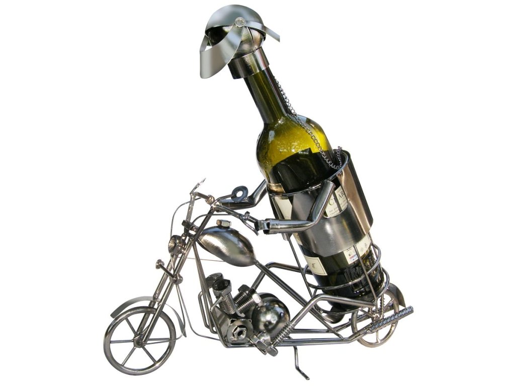 Popis produktu Stojan na jednu láhev vína . Doporučujeme jako tématický dárek.Láhve dobrého vína by se neměly po bytě toulat jen tak, zaslouží si něco lepšího. Co takhle originální stojan, ve kterém by působily trendy a zajisté by překvapily všechny hosty? Obdarujte oslavence tímto originálním stojanem. Vhodný pro typ klasické láhve 0,75 l. Nejedná se o výrobek z dílny uměleckého kováře, ale o strojově vyráběné produkty u kterých se mohou vyskytnout drobné mechanické poškození v rámci strojové výroby. Vyrobeno z kovuPrůměr otvoru na láhev: cca 9 cmDoplňkové parametry