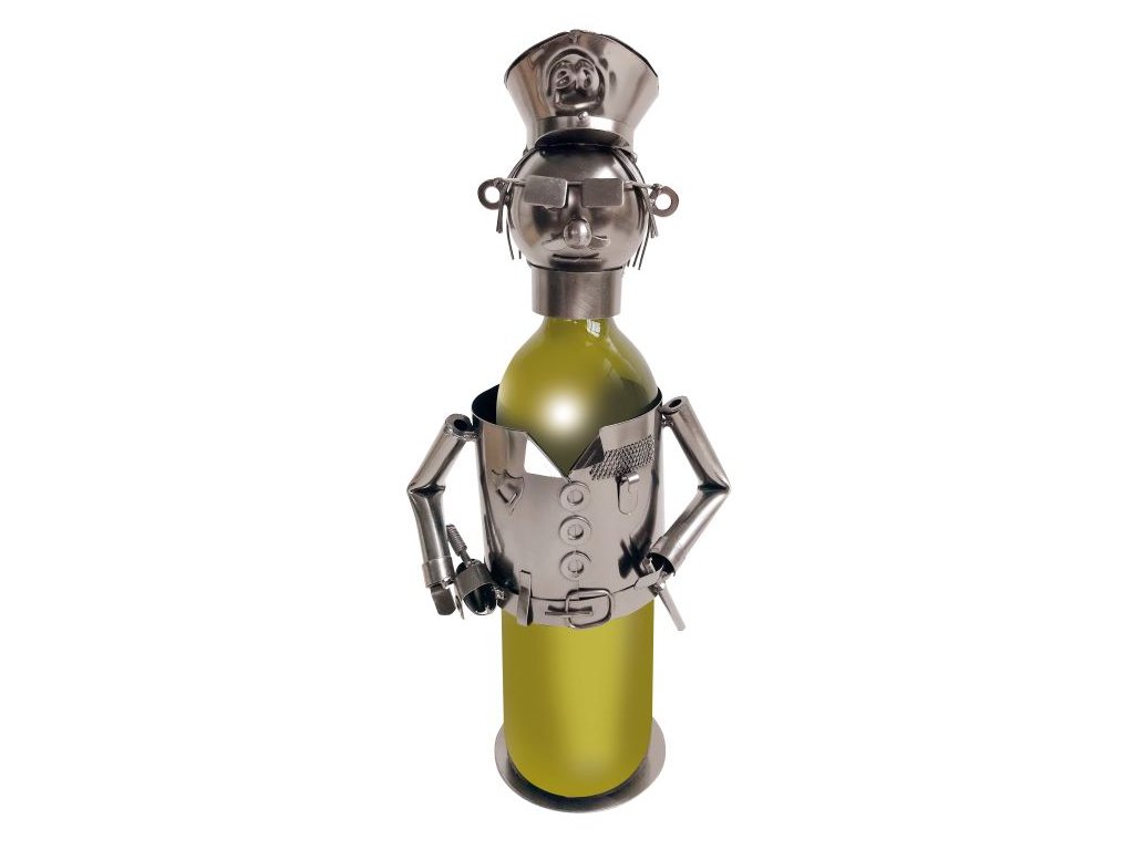 Kovový stojan na víno, motiv policista