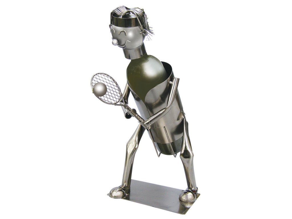 Kovový stojan na víno, motiv tenista