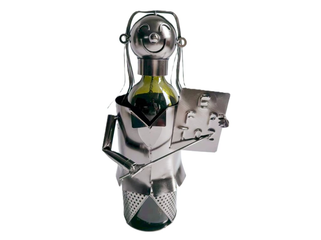 Kovový stojan na víno, motiv učitelka s tabulí