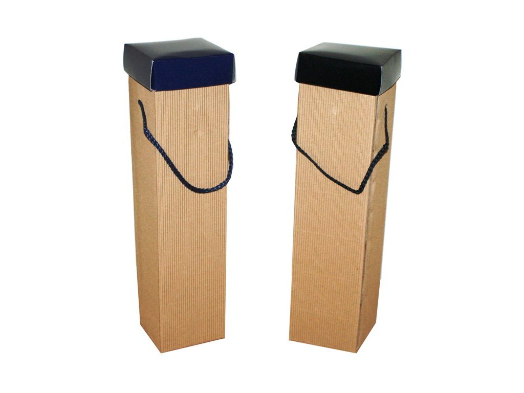 Krabice na láhev,vlnitá lepenka, modré víko. 36,5 x 11,5 x 9 Do vyprodání zásobDoplňkové parametry