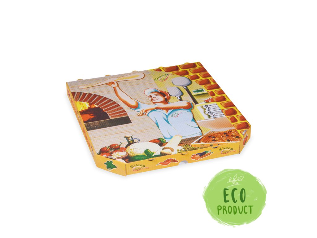 Krabice na pizzu z vlnité lepenky vhodná pro doručovací restaurace, fast foody a pizzerie s donáškou. Praktický zavírací systém a pevný papír zajišťují pro vaši pizzu opravdu prémiový styl přepravy. Krabice jsou vybaveny větracími otvory k odstranění vlhkosti a dostatečně pevný materiál chrání pizzu před poškozením a znečištěním. Balení obsahuje 100 kusů.Doplňkové parametry