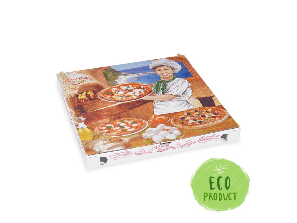 Krabice na pizzu z vlnité lepenky vhodná pro doručovací restaurace, fast foody a pizzerie s donáškou. Praktický zavírací systém a pevný papír zajišťují pro vaši pizzu opravdu prémiový styl přepravy. Krabice jsou vybaveny větracími otvory k odstranění vlhkosti a dostatečně pevný materiál chrání pizzu před poškozením a znečištěním. Z vlnité lepenky 32 x 32 x 3 cm. Balení obsahuje 100 kusů.Doplňkové parametry