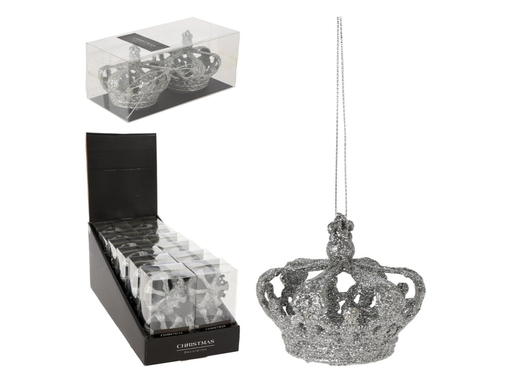 Královská koruna se stříbrnými třpytkami je poutavou dekorací nejen během vánočních svátků.- tento klenot lze zavěsit nebo jen tak postavit