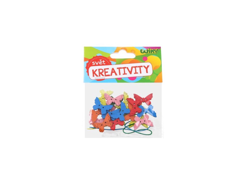 Dřevěné motýlci s provázkem. Knoflíky jsou 2-dírkové, vhodné i pro nácvik návleku. Pro umělce a milovníky ručních prací.Doplňkové parametry