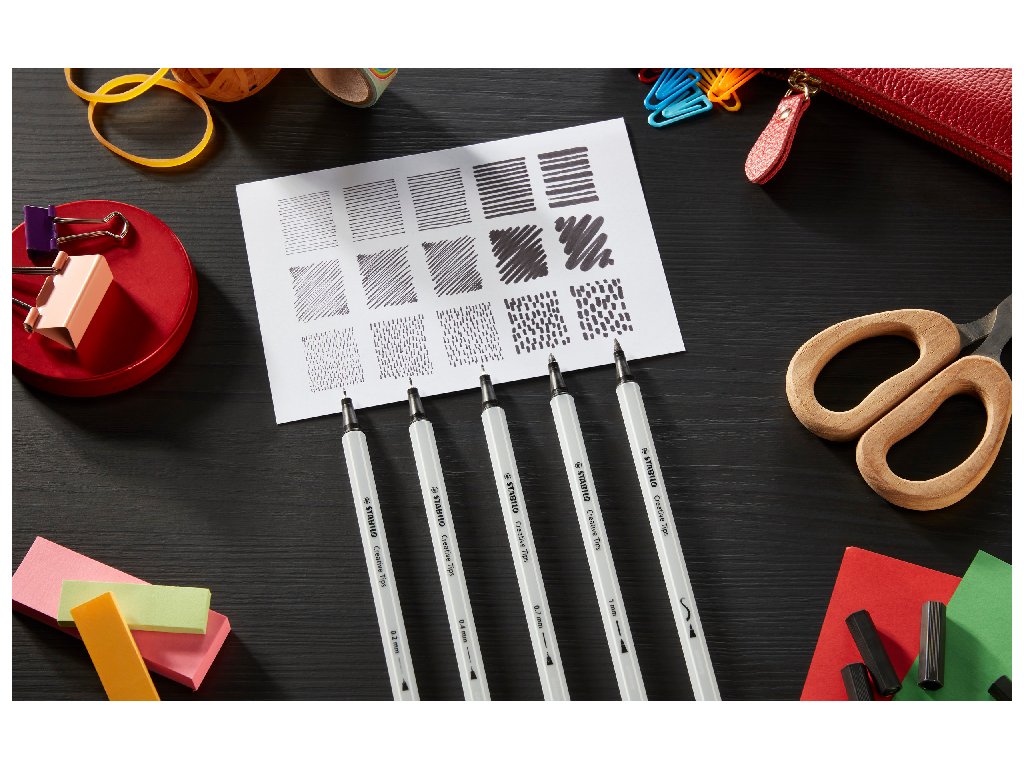 So STABILO Creative Tips je možné pracovať rôznymi technikami a kombinovať ich vďaka rôznym šírkam stôp a hrotom.