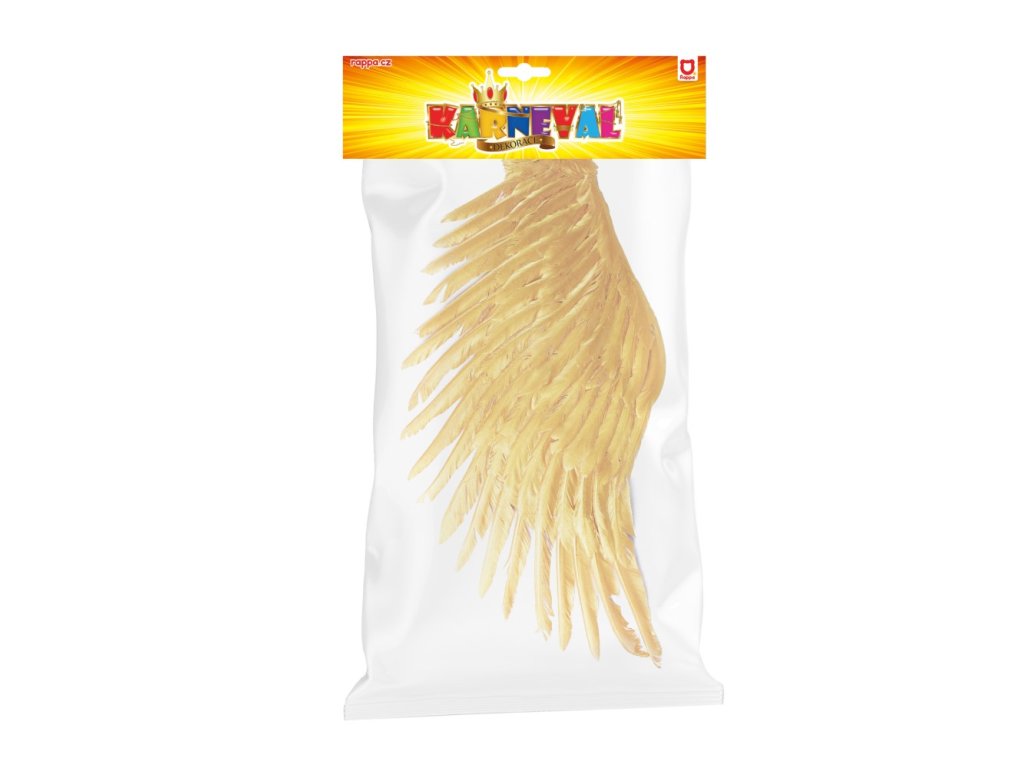 Překrásná křídla pro opravdové anděly ve zlaté barvě! Tento parádní kousek na gumičku je skvělým doplňkem k andělskému kostýmu. Velikost křídel po rozložení je cca 96 cm.Doplňkové parametry