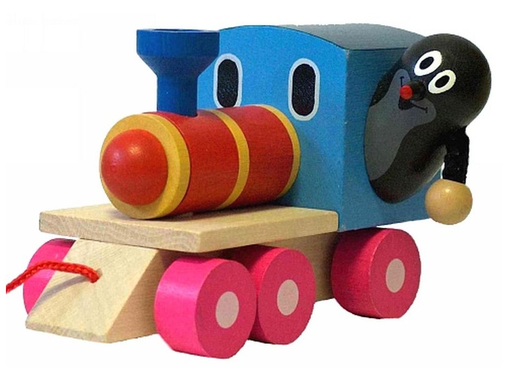 Tahací dřevěná mašinka s krtečkem jako strojvedoucím. Nevhodné pro děti do 3 let. Obsahuje malé části. Výrobek je zdravotně nezávadný.Doplňkové parametry