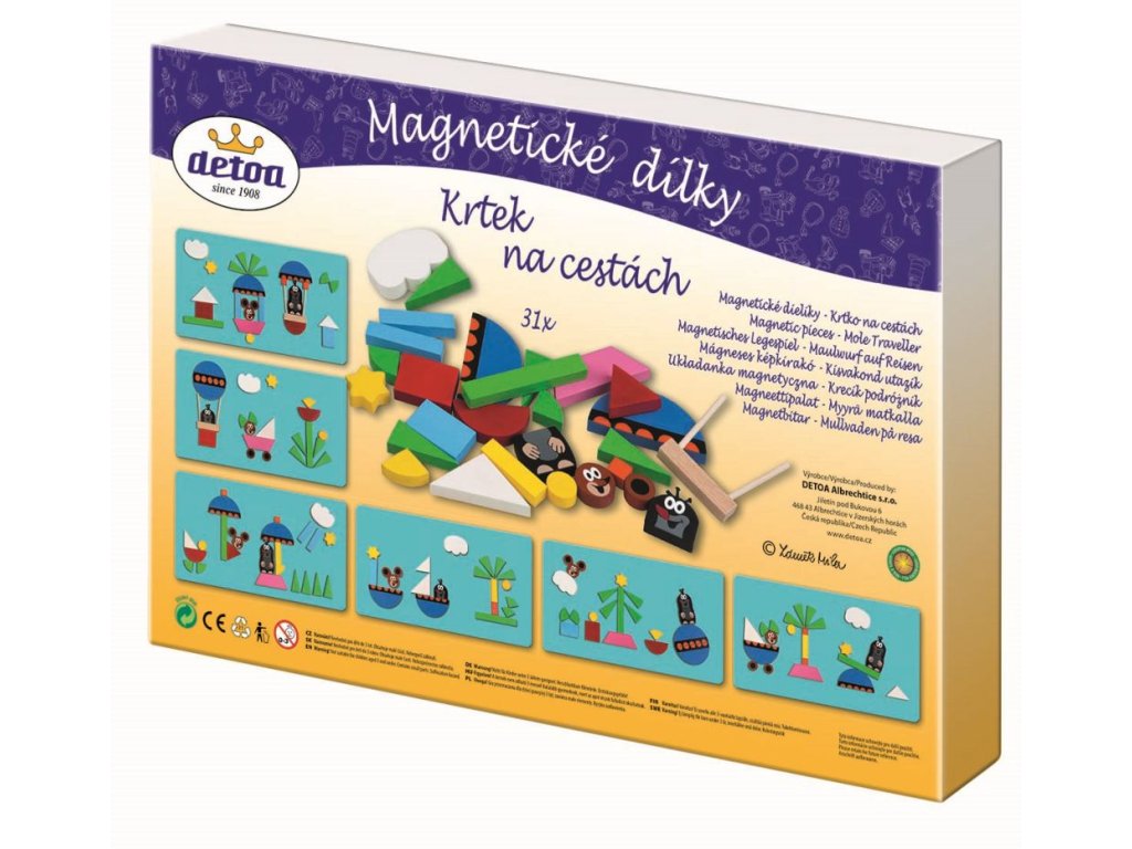 Na kovovou tabulku si děti mohou skládat nepřeberné množství obrázků s motivem Krtečka a jeho kamarádky Myšky. Výrobek podporuje zručnost a fantazii dětí. Je vhodný pro děti od 3 let.Doplňkové parametry