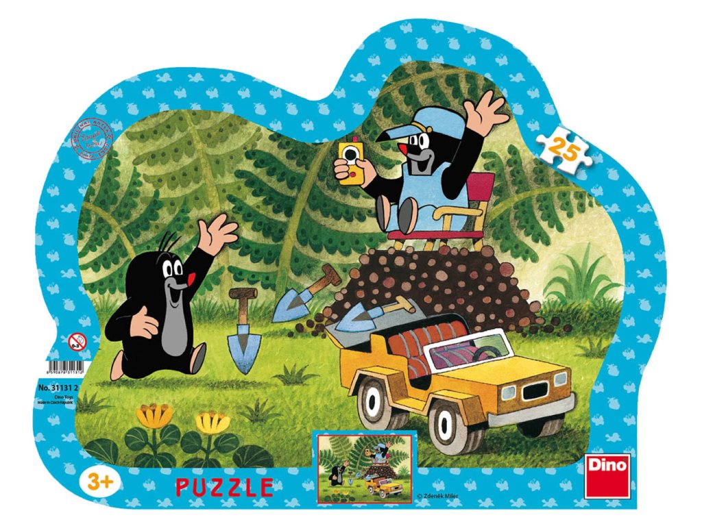 Dětské deskové puzzle 25 dílků v tvarovém rámu s motivem Krtečka se žlutým autem.Doplňkové parametry