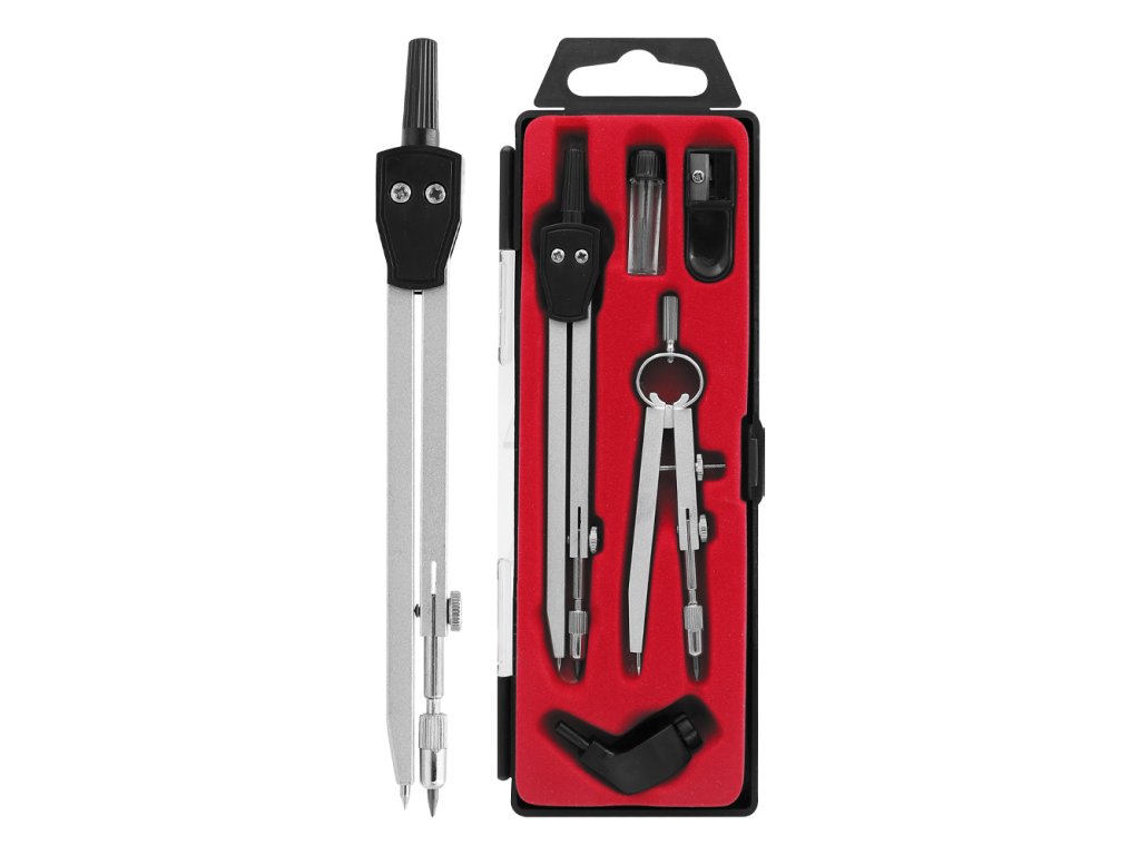 Sada kružidel s kovovým tělem pro precizní rýsování v praktickém pouzdře.