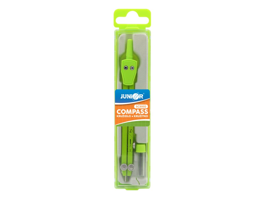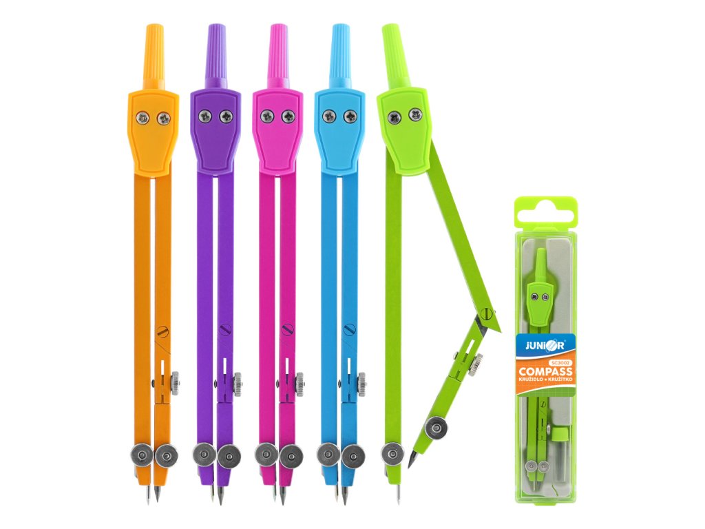 Školní kovové kružítko od značky JUNIOR s ohebným ramenem.