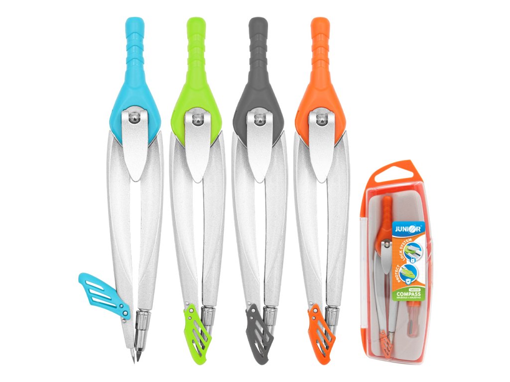 Kružítko s odlehčeným, kovovým tělem pro precizní rýsování v praktickém pouzdře (3 barvy).