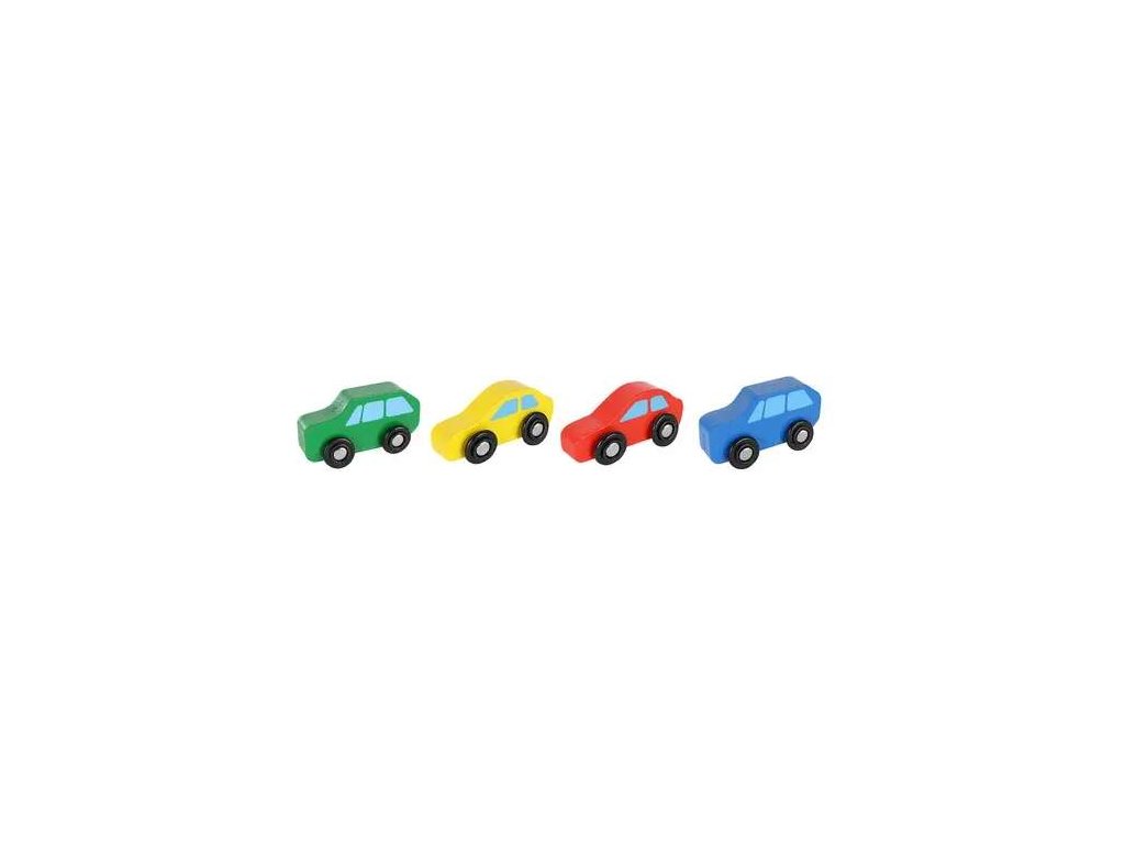 DŘEVĚNÝ DVOUPLAŽDOVÝ NÁKLADNÍ VŮZ + AUTOMOBILY - sada se skládá z náklaďáku, připojeného, pojízdného přívěsu a 4 aut (červené, modré, žluté, zelené) Má rozkládací funkci, díky které mohou auta snadno vjet do přívěsu.