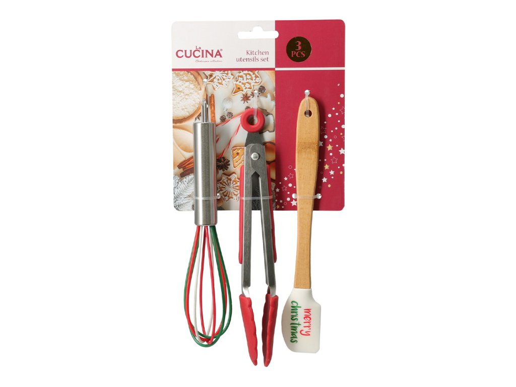 Třídílná vánoční sada kuchyňského náčiní obsahuje: