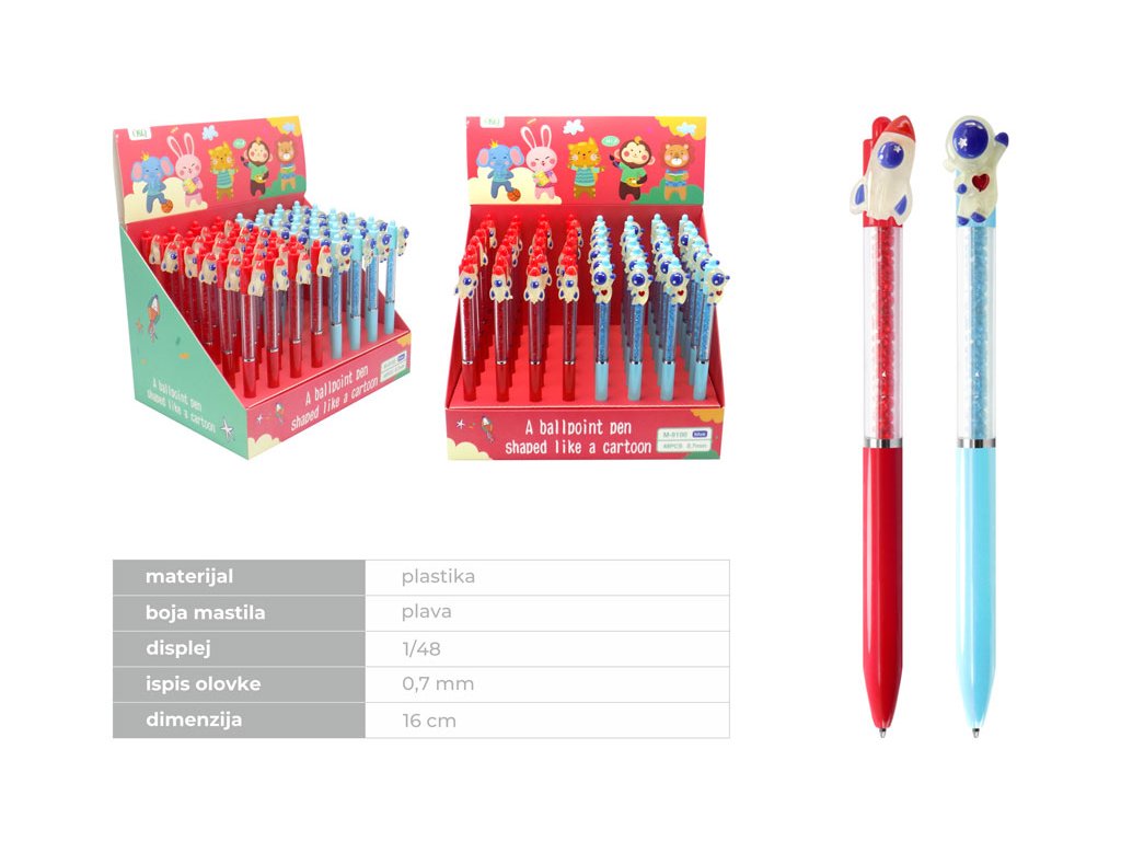 Podrobný popis: Kuličkové pero s ozdobným doplňkem ve tvaru kosmonauta a raketyPrůhledné tělo pera naplněné krystalyDélka pera 16 cmTloušťka 0,7 mmBarva inkoustu modráDvě barvy - červená a modrá, dva ozdobné doplňkyDisplej 1/48 Obchodní informace: Dovozce: Reas-PackDoplňkové parametry