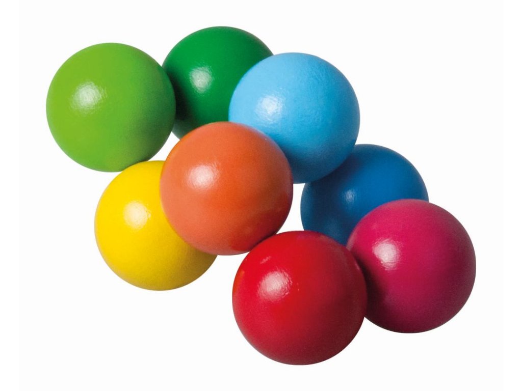 Osm různobarevných pohyblivých kuliček spojených na šňůře. Podporují jemnou motoriku dítěte. Pro děti od půl roku. Výrobek splňuje požadavky EU na bezpečnost. Průměr jedné kuličky je 30 mm.Doplňkové parametry