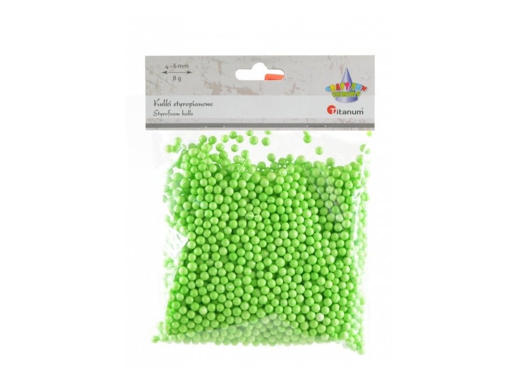 Zelené polystyrenové kuličky o velikosti 4 - 6 mm. Balení obsahuje 8 g těchto kuliček. Ideální doplněk při nejrůznějších kreativních činnostech. Nevhodné pro děti do 3 let.Doplňkové parametry
