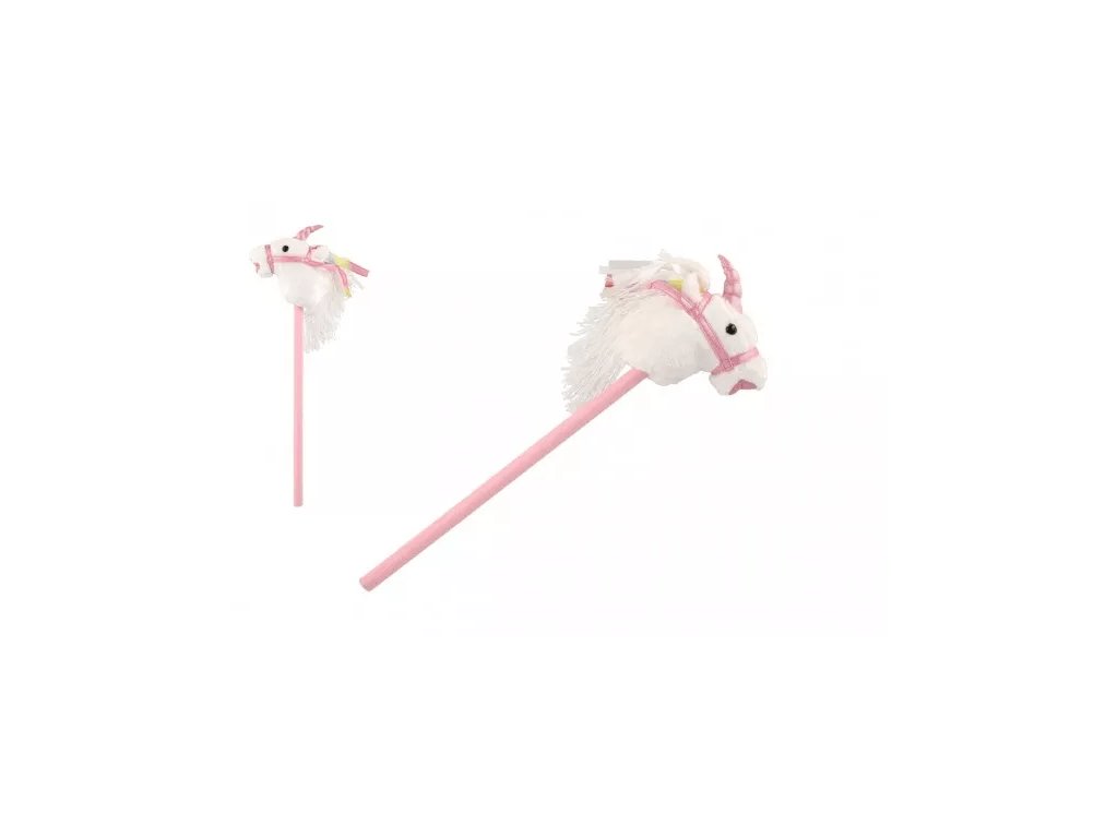Kůň jednorožec na tyči plyš 80cm na baterie se zvukem bílý v sáčku