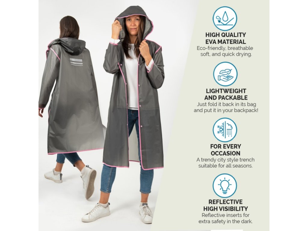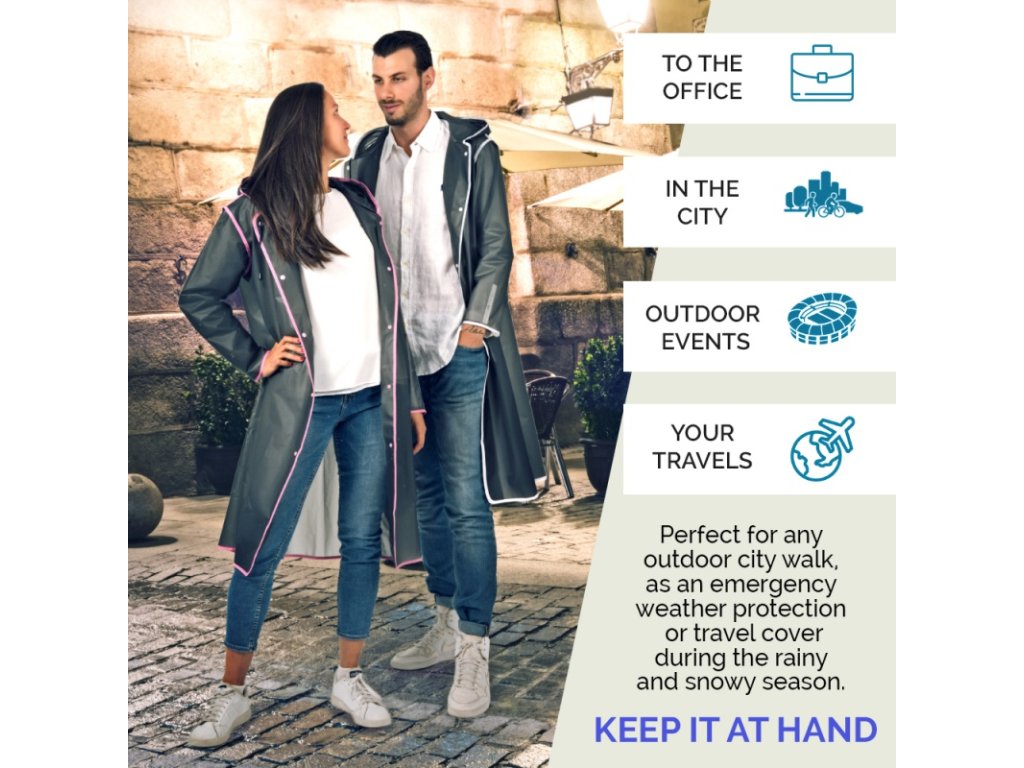 Nic vás nezastaví, pokud venku prší a vy jste si naplánovali výlet do hor nebo procházku s přáteli ve městě, protože pokud si obléknete pláštěnku Perletti, zůstanete v suchu, i když budete chodit a pršet! Reflexní detaily vás zviditelní pro auta, která na silnici křižujete, a jakmile se rozhodnete zastavit a dát si přestávku, můžete si pončo uložit do praktického vodotěsného obalu. Po nošení se budete cítit pohodlně a dokonale v pohodě díky nastavitelné kapuci a knoflíkům na rukávech, které umožňují utáhnout manžety.• kvalitní a odolný EVA (ethylene-vinyl acetate) materiál, neobsahuje chlór