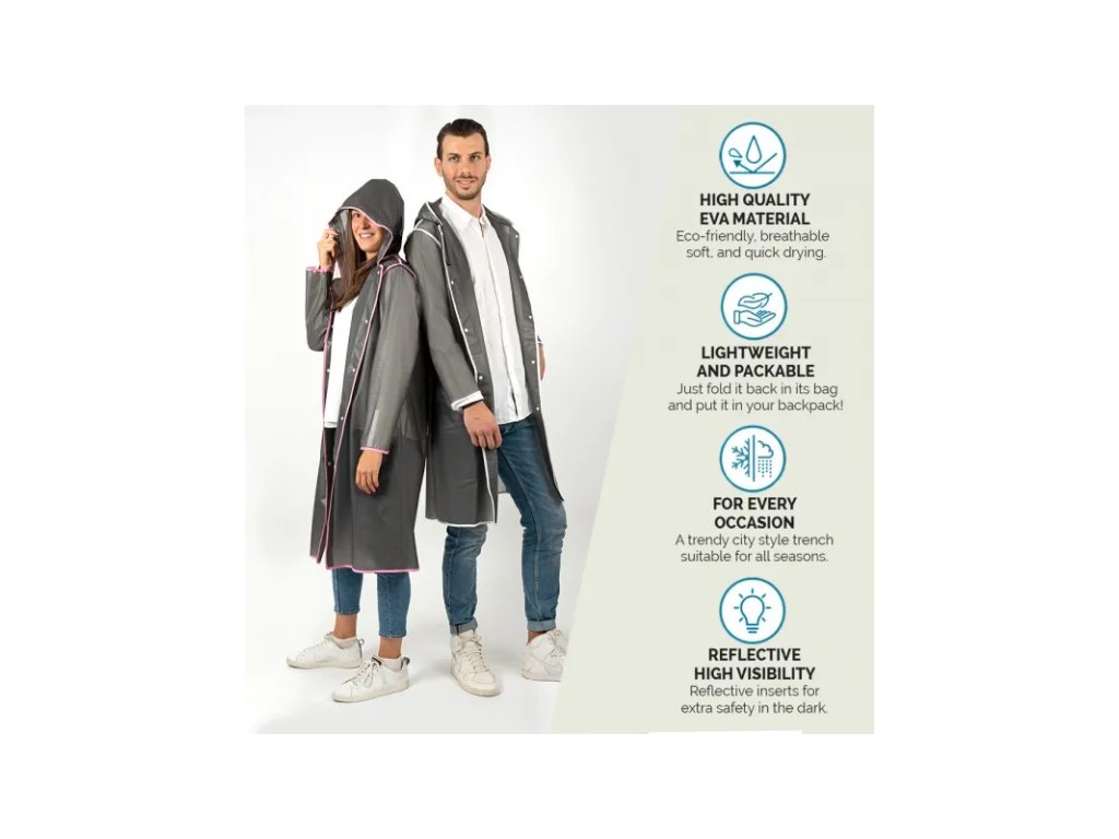 Nic vás nezastaví, pokud venku prší a vy jste si naplánovali výlet do hor nebo procházku s přáteli ve městě, protože pokud si obléknete pláštěnku Perletti, zůstanete v suchu, i když budete chodit a pršet! Reflexní detaily vás zviditelní pro auta, která na silnici křižujete, a jakmile se rozhodnete zastavit a dát si přestávku, můžete si pončo uložit do praktického vodotěsného obalu. Po nošení se budete cítit pohodlně a dokonale v pohodě díky nastavitelné kapuci a knoflíkům na rukávech, které umožňují utáhnout manžety.• kvalitní a odolný EVA (ethylene-vinyl acetate) materiál, neobsahuje chlór