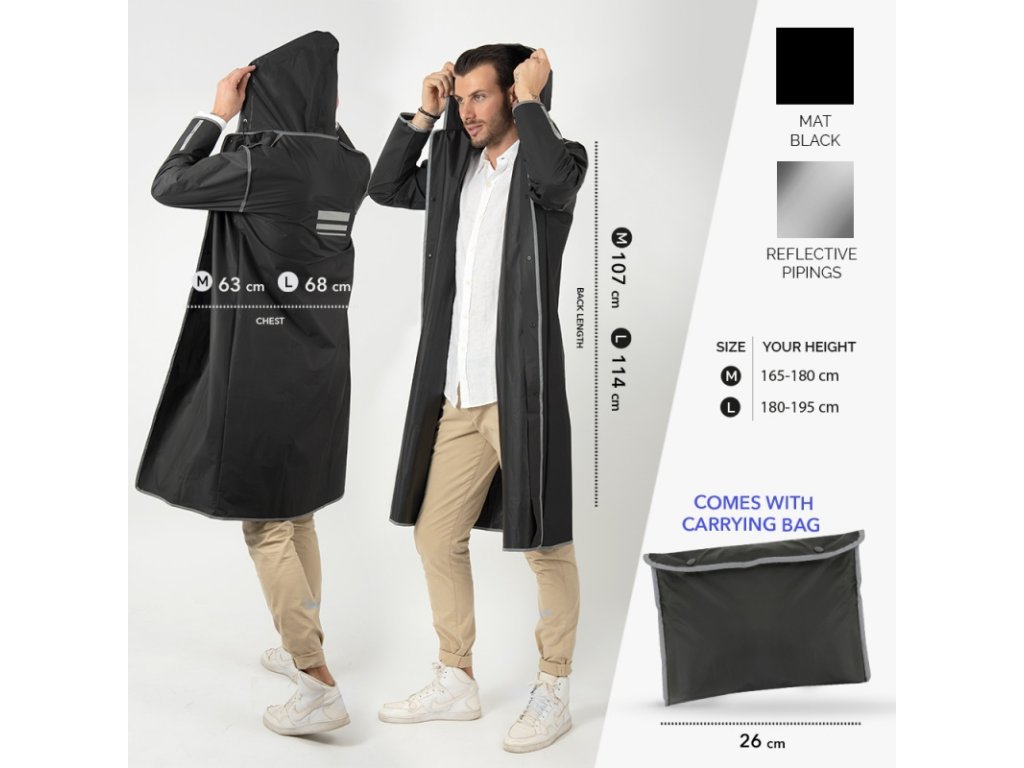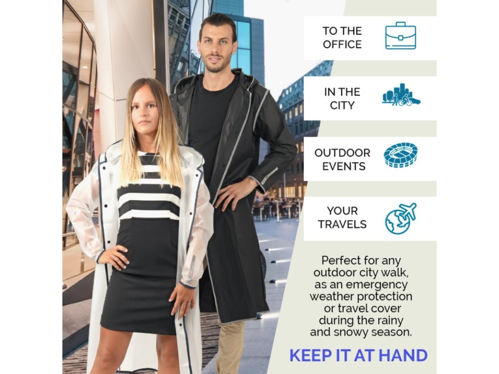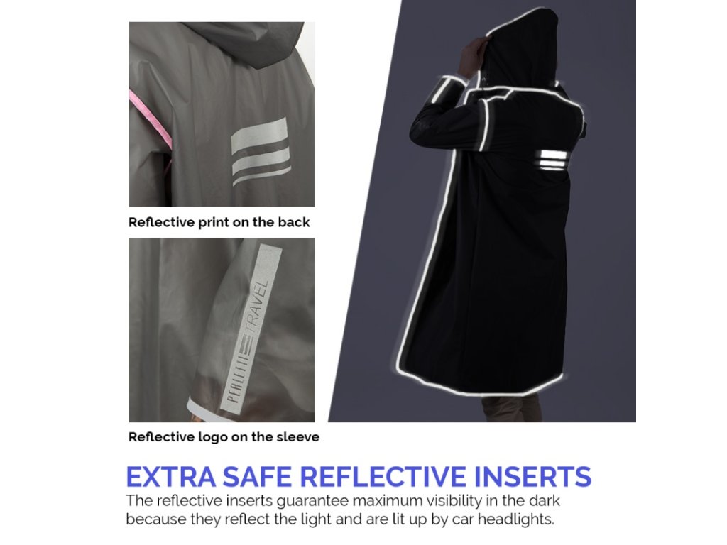 Nic vás nezastaví, pokud venku prší a vy jste si naplánovali výlet do hor nebo procházku s přáteli ve městě, protože pokud si obléknete pláštěnku Perletti, zůstanete v suchu, i když budete chodit a pršet! Reflexní detaily vás zviditelní pro auta, která na silnici křižujete, a jakmile se rozhodnete zastavit a dát si přestávku, můžete si pončo uložit do praktického vodotěsného obalu. Po nošení se budete cítit pohodlně a dokonale v pohodě díky nastavitelné kapuci a knoflíkům na rukávech, které umožňují utáhnout manžety.• kvalitní a odolný EVA (ethylene-vinyl acetate) materiál, neobsahuje chlór