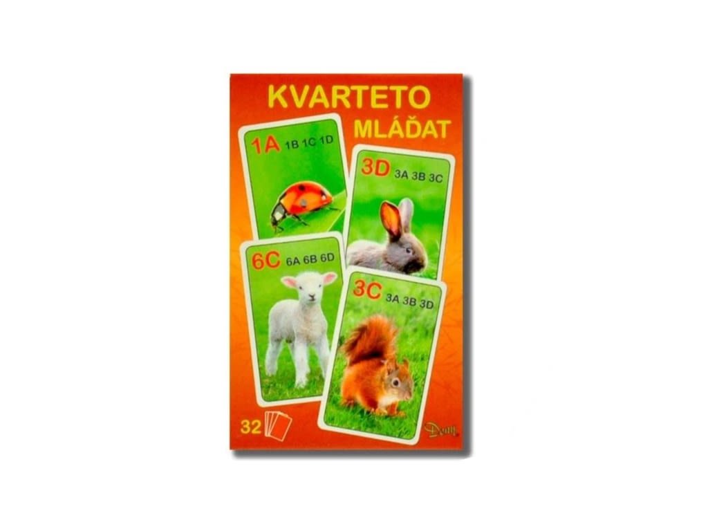 Kvarteto je karetní hra, jejímž cílem je shromáždit čtveřici k sobě příslušejících karet. Děti tak procvičují schopnost kombinovat, komunikovat a rozvíjí také logické myšlení. Kvarteto mláďata obsahuje 32 ks karet.Doplňkové parametry